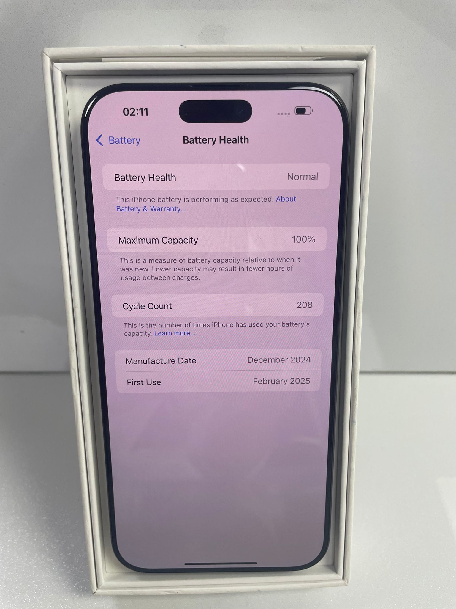 With A Grade condition, 100% battery health, and a low cycle count of just 208, this iPhone delivers top-tier quality and long-lasting performance—perfect for both personal and professional use.