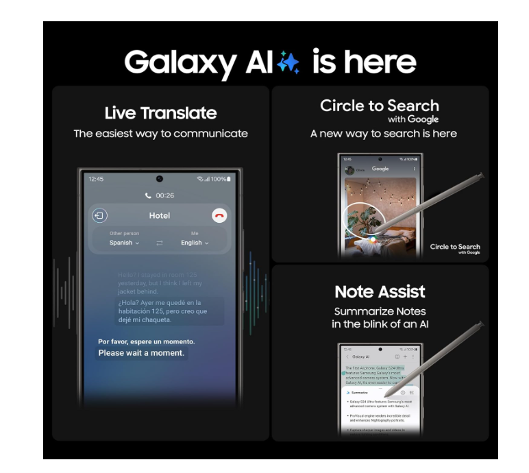 Live Translate, Circle to Search, Generative Edit, Note Assist, and more.
