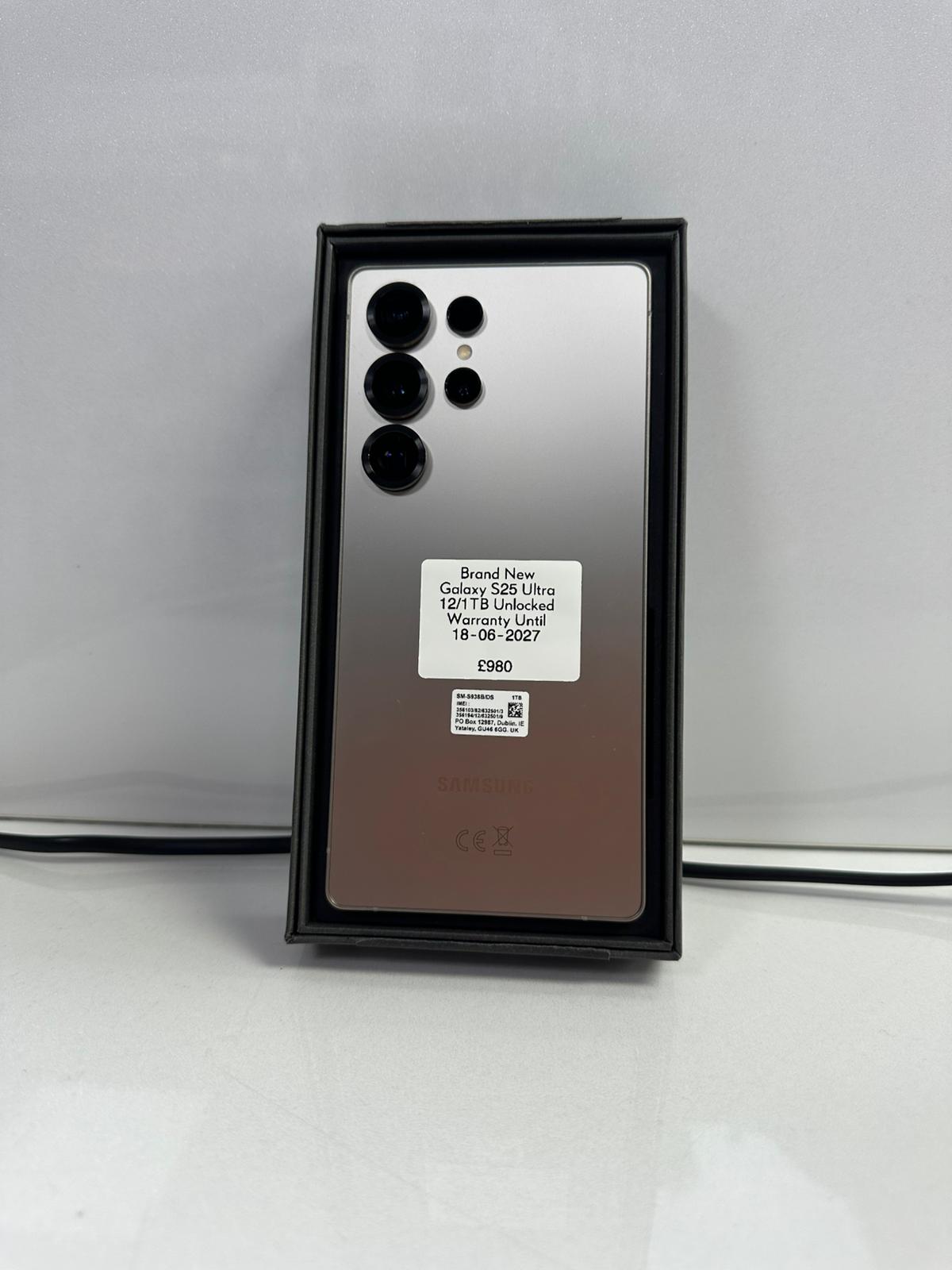 brand new Samsung Galaxy S25 Ultra in perfect condition. The phone is fully unlocked, compatible with all networks, and comes with official warranty valid until 18/06/2027 for complete peace of mind.
