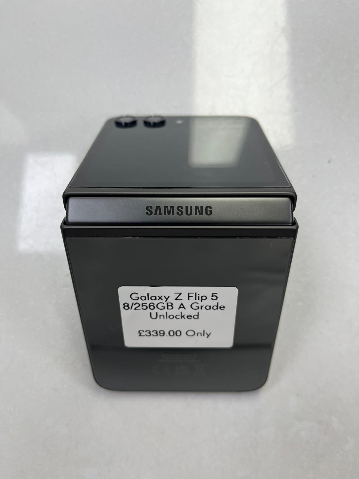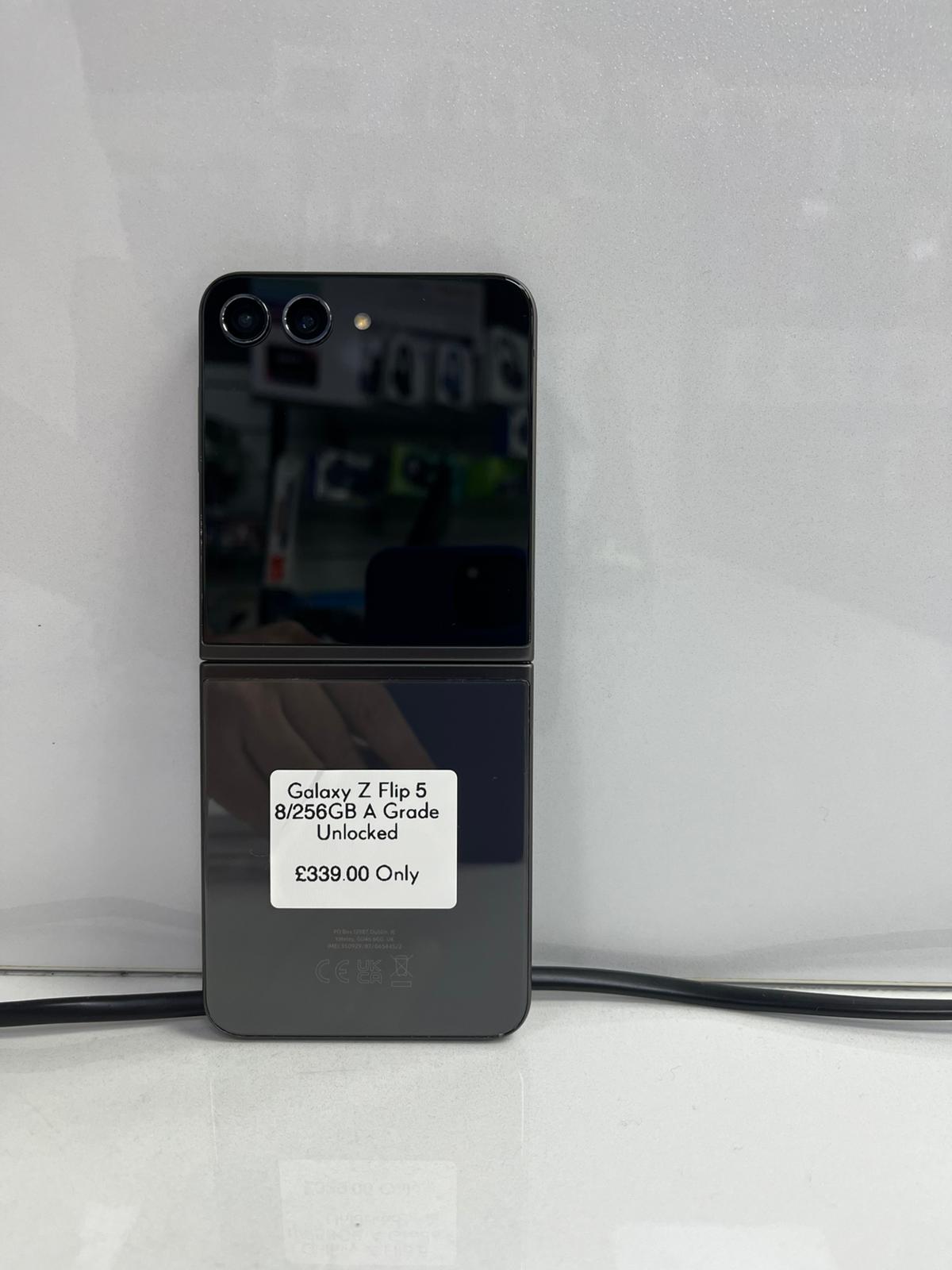 Samsung Galaxy Z Flip 5 in A Grade condition. The phone is fully unlocked, compatible with all networks, and has been well maintained with excellent performance and cosmetic condition.